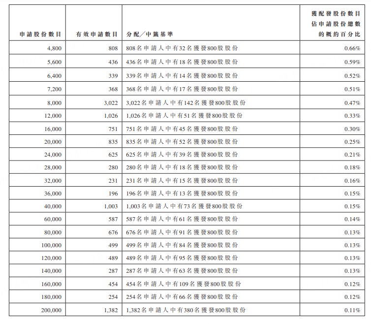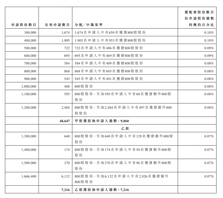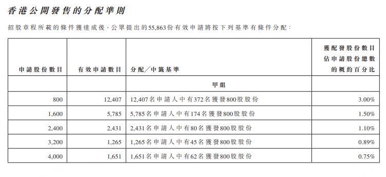 草姬集团 公布招股结果,公开发售接获6,083.63倍认购,今年「超购王」,一手(800股)中签率3%,认购100万股始获稳派一手;国际配售录得1.79倍认购。按回补机制,公开发售股份已增至1,666.72万股,占发售总数50%。最终发售价3.75元,下限定价,集资净额9,530万元。股份预期今日(19日)挂牌。