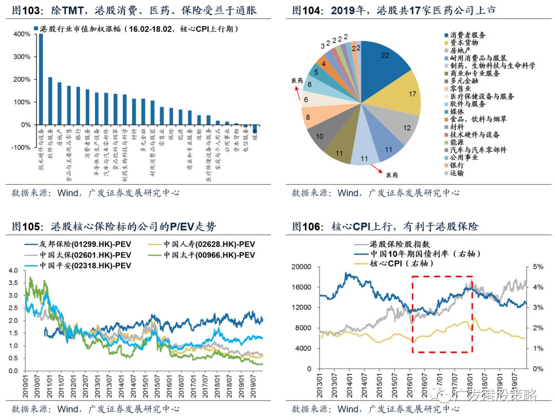 4)但核心CPI或上行,使得港股盈利在经历短期“逆风”后重回上行。随着PPI改善,后续核心CPI将持续走高,而“猪通胀”在跨过2020Q1的高点后或导致CPI增速放缓。预计CPI-核心CPI的“裂口”收窄之时,正是恒指非金融公司开启盈利上行周期之际,类似历史上的13Q4-14Q1、16Q2-16Q3,均出现了盈利触底或者反弹。