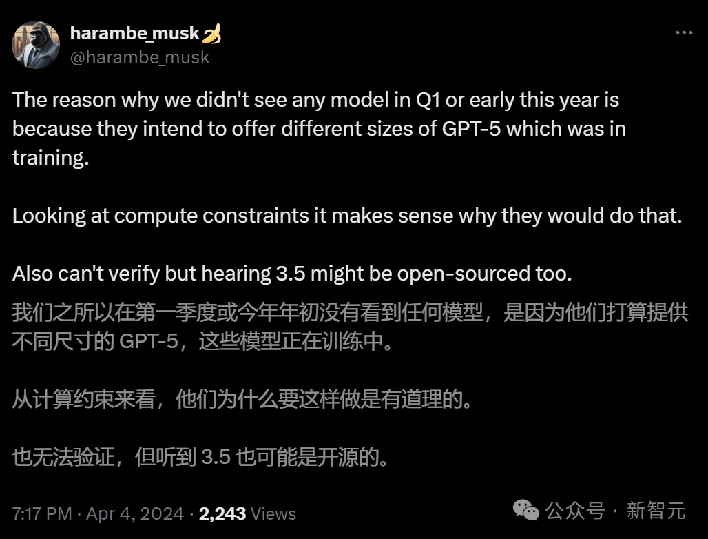 有人猜,或许GPT-5会和Claude 3一样,提供几种不同的型号。