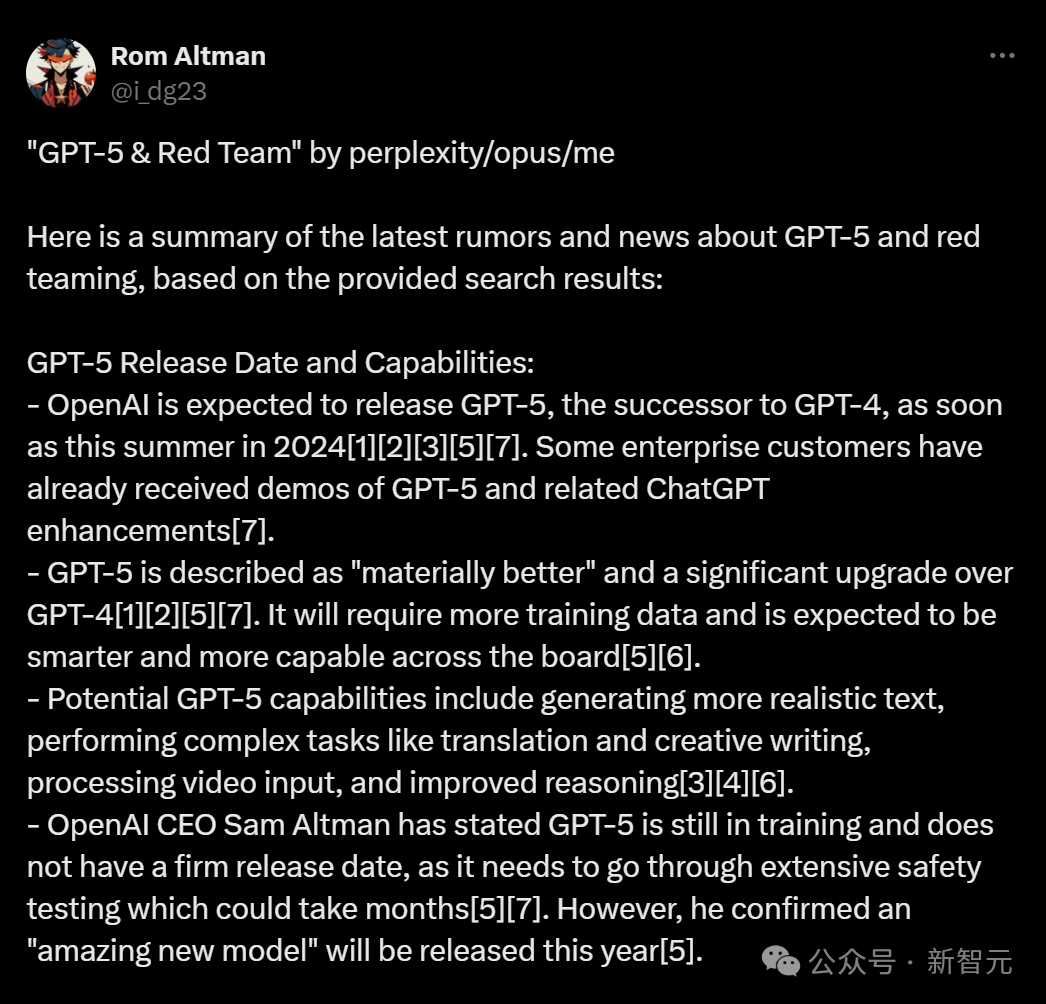 关于GPT-5的发布时间,可能在今年夏天就问世。