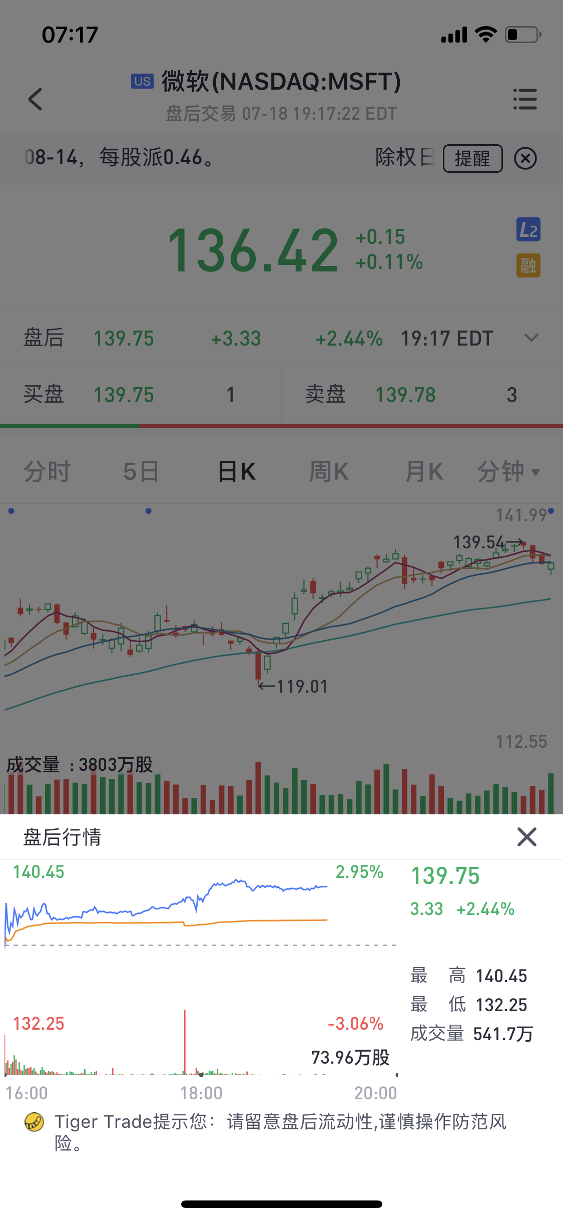 业绩发布后,微软股价创历史新高: