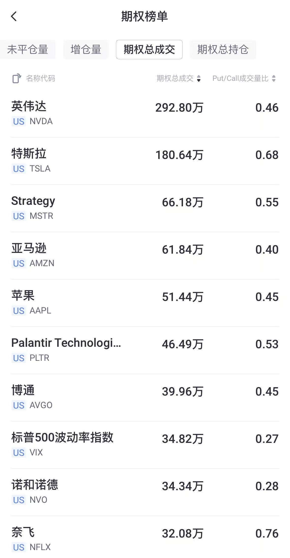 二、期权成交总量TOP10