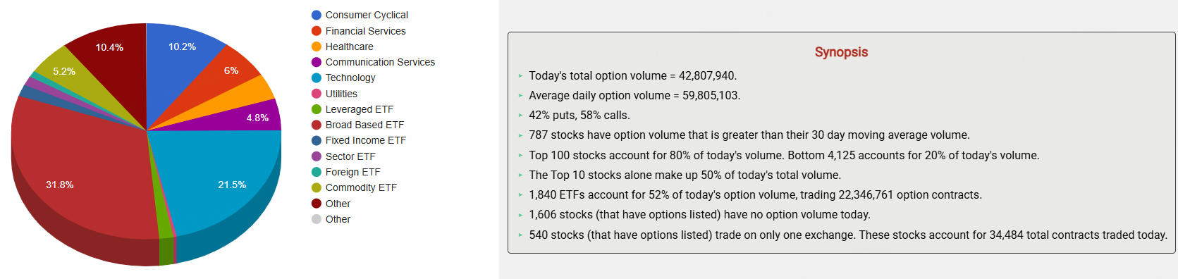期权市场总成交量42,807,940张合约,其中看涨期权占比58%。