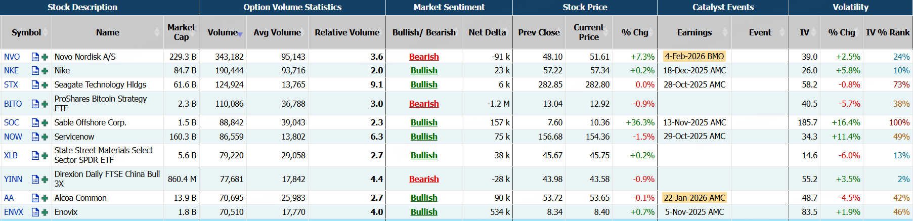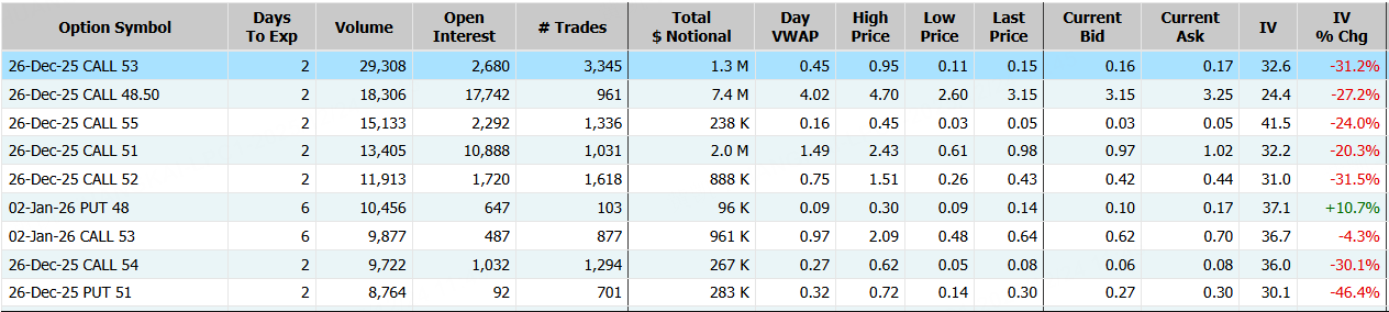 诺和诺德隔夜收涨超7%,期权合约成交34.34万张,较90日均量放大3.6倍。12月26日到期的53美元的行权看涨期权交易量特别高,共有29,308份合约交易。 $NVO 20251226 53.0 CALL$
