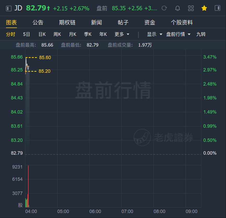 京东美股盘前涨超3%,今日其港股收涨超5%。