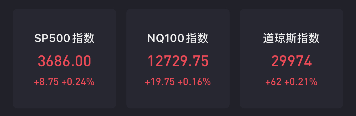 12月23日,美国三大股指期货震荡上扬,截至发稿,道指期货涨0.21%;标普500指数期货涨0.24%;纳斯达克100指数期货涨0.16%。