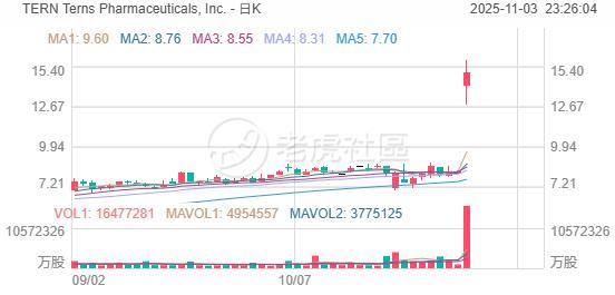 周一,生物制药公司Terns Pharmaceuticals, Inc. 飙升超80%,消息称其针对某类型白血病的疗法获得进展。