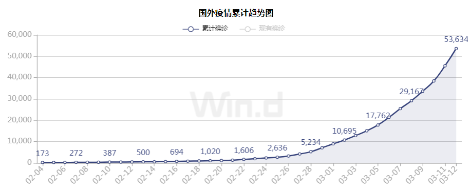 国外疫情的确诊病例,还处于加速扩散的状态,疫情确诊人数会有明显的趋势性,除非像中国一样大规模隔离,否则不会在短期内出现拐点,反而是加速扩散。