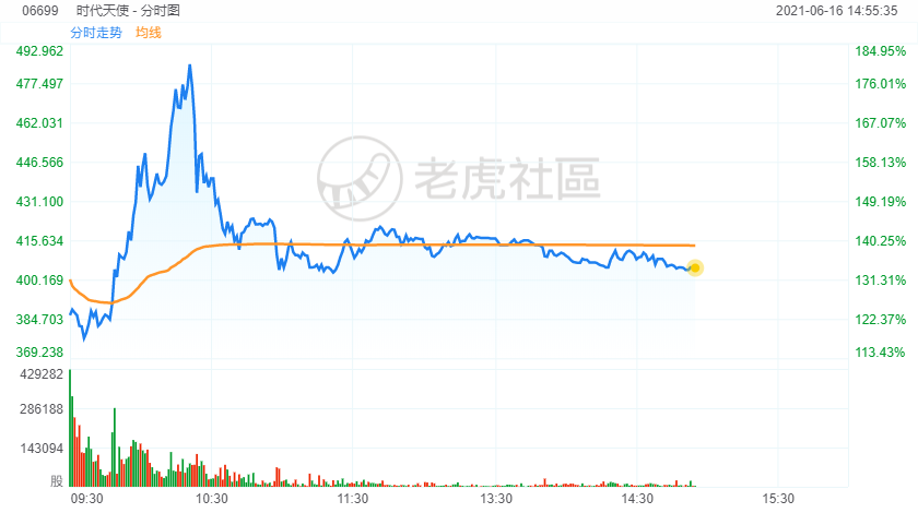 今日时代天使正式在港交所上市,开盘高开131.21%,报400港元。盘中涨幅高达180%,报490港元。当前涨幅133.64%,市值近700亿港元。