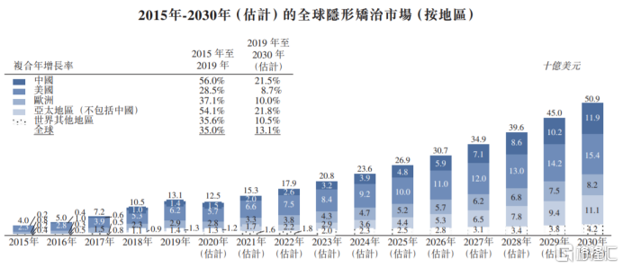 时代天使所作业务属于牙科服务行业的牙科隐形矫正这一领域。根据灼识数据显示,2019年全球隐形矫正市场规模达到131亿美元,预计2030年将达到509亿美元,2019-2030年复合增长率将达到13.1%。