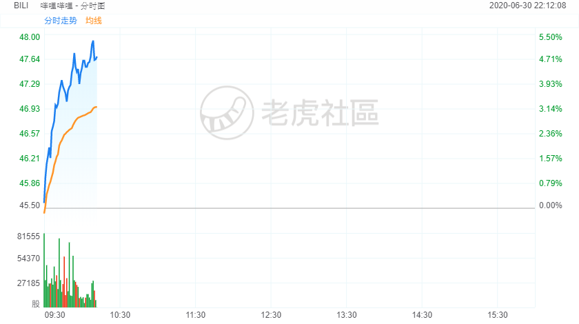 6月30日,盘初,哔哩哔哩股价拉升走高,涨超4%,再度刷新历史最高纪录。