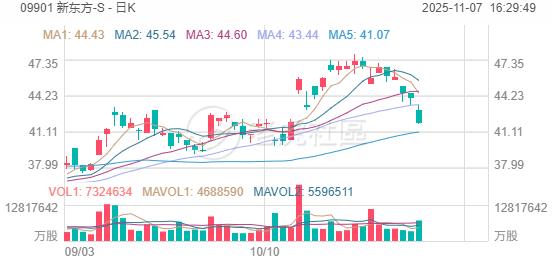 教育股多数下跌,天立国际控股跌超15%,思考乐教育跌超6%,新东方-S跌近5%,卓越教育集团跌超4%;