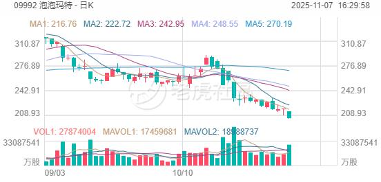 新消费概念股跌幅居前,泡泡玛特跌近6%,蔚来-SW跌超5%,蜜雪集团、布鲁可、上美股份跌超3%,老铺黄金、茶百道跌近3%;