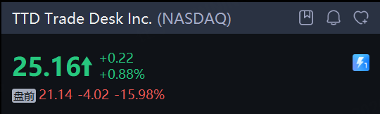 Trade Desk Inc. 跌约16%。公司预计 2026 年第一季度营收为 6.78 亿美元,低于此前预期的 6.884 亿美元。