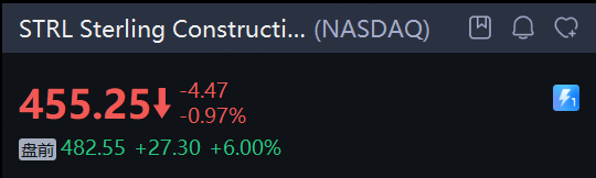 Sterling Construction Company In 涨6%。公司报告了超预期的第四季度业绩,2026财年的每股收益指引也高于预期。