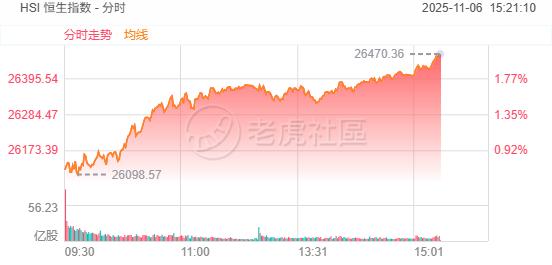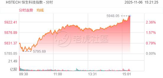 周四尾盘,港股三大指数涨幅扩大,恒生指数、国企指数涨超2%,恒生科技指数涨近2.8%。