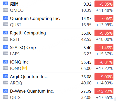受此消息影响,量子计算概念股夜盘拉升,截止发稿,Rigetti Computing涨超18%,D-Wave Quantum Inc.涨超17%,Quantum Computing Inc.涨超13%。