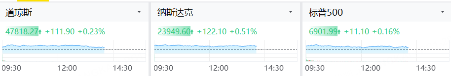 美联储公布利率决议后,美股三大股指维持涨势,道指现涨0.23%,标普500指数涨0.16%,纳指涨0.51%。