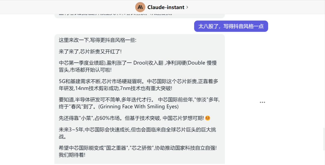 但仅从这些表现上看,加上研发团队和open AI的关系,至少可以推断出,它应该是市面上最接近chatGPT的产品了。