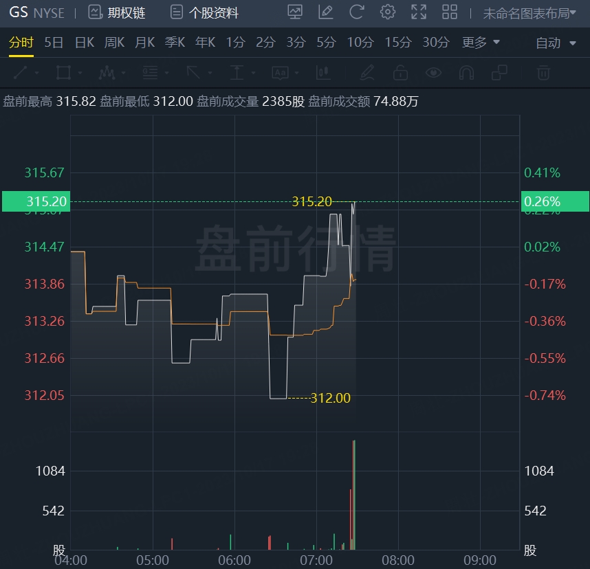 财报发布后,高盛盘前小幅上涨。