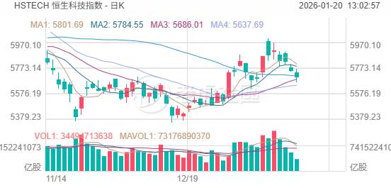 1月20日周二,港股上午盘三大指数探底回升,恒生科技指数午间微幅收跌0.04%,国企指数跌0.12%,恒生科技指数跌0.66%盘中一度跌至1.5%。