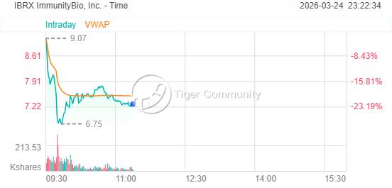 ImmunityBio在纽约开盘后股价一度暴跌30%,现在跌逾20%。