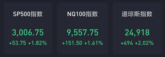 5月26日周二,美国三大股指期货在盘前交易时段集体上扬。截至发稿,道指期货涨超2%,纳指期货涨1.61%,标普500指数期货涨1.82%。