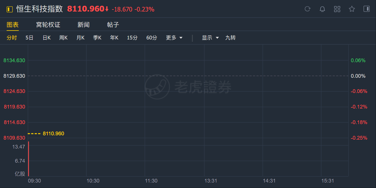 恒生科技指数跌0.23%,新东方在线跌逾9%。