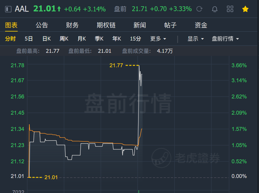 美国航空盘前涨超3%,Q1营收40.08亿美元