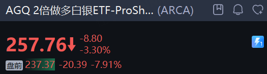 周五,现货白银、黄金价格盘中“跳水”式下挫。现货白银大跌超5%,失守88美元,现货黄金跌超0.6%。概念标的盘前普跌, 2倍做多白银ETF-ProShares 跌近8%, 白银ETF-iShares 跌近4%, 赫克拉矿业 跌超2%,科尔黛伦矿业、泛美白银跌超1%。