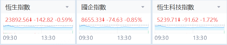 2025年6月13日,港股市场收盘涨跌不一。恒生指数下跌0.59%,国企指数下跌0.85%,恒生科技指数下跌1.72%,红筹指数上涨1.27%。