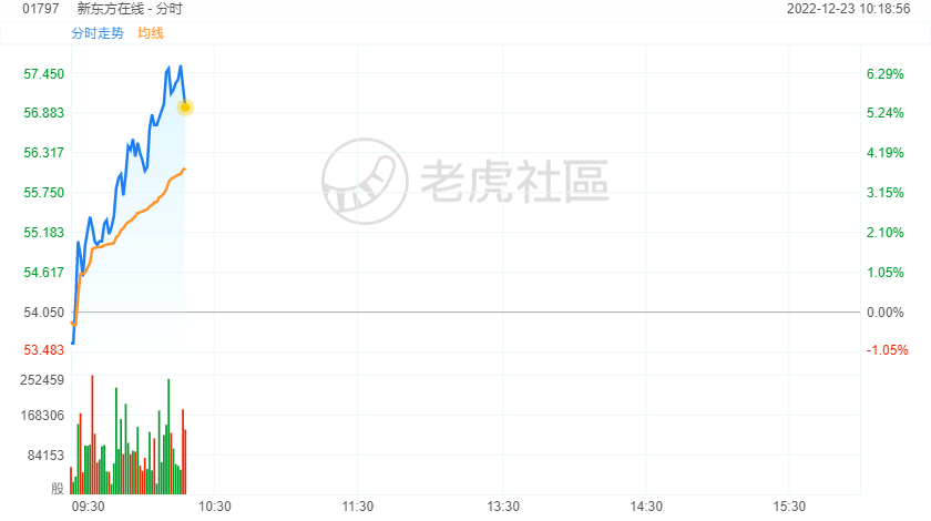 12月23日,新东方在线持续走强,盘中涨超6%至57.7港元,再创历史新高,市值超580亿港元;该股年内累涨超980%。