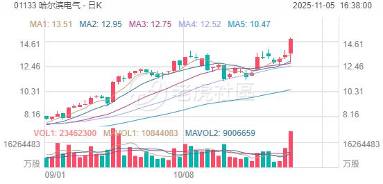 电力设备股延续涨势,哈尔滨电气涨10%,亿华通涨近8%,东方电气、东北电气、金风科技涨超3%,协鑫科技涨超2%;