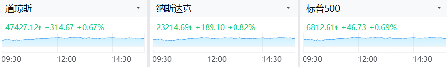 周三(11月26日),美股三大指数连涨四日。截至收盘,道琼斯指数涨0.67%,报47427.12点;标普500指数涨0.69%,报6812.61点;纳斯达克综合指数涨0.82%,报23214.69点。