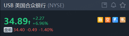 截至发稿,美国合众银行盘前跌1.4%。