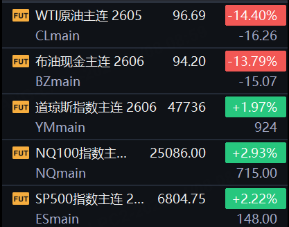 4月8日,受美伊同意停火两周消息提振,纳斯达克100指数期货涨幅一度扩大至3%。
