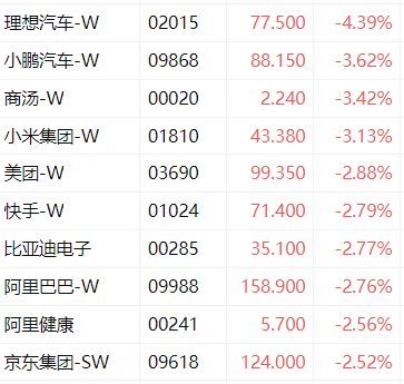科网股普跌下跌,阿里巴巴-W、美团-W、快手-W、京东集团-SW跌超2%。