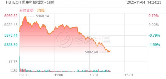 11月4日,港股跌幅继续扩大,恒生科技指数跌超2%。