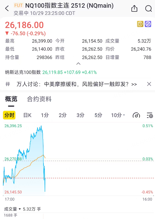北京时间周四午间时段,美股三大指数期货集体“跳水”,已全部由涨转跌。
