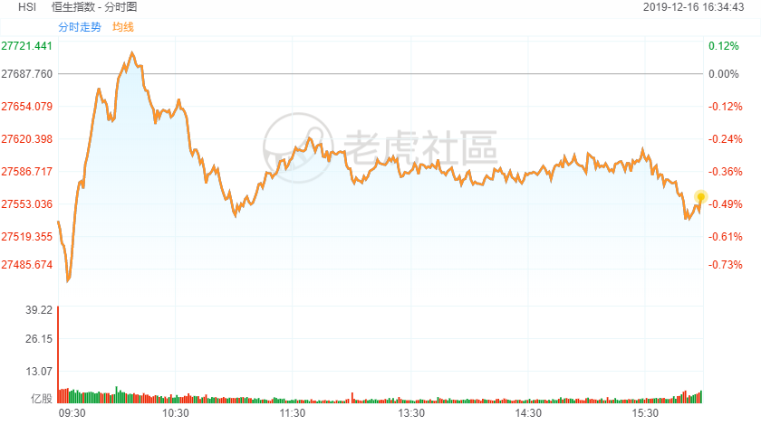 港股市场未能延续上周强势上涨行情,主要股指皆有跌幅。恒指上午盘略有冲高,但未能持续,尾盘再次下探。市场继大涨后明显趋于谨慎。截至收盘,恒指跌0.65%,报27508.09点。国指跌0.55%,报10778.89点。主板全日成交798.4亿港元,港股通净流入50.62亿港元。
