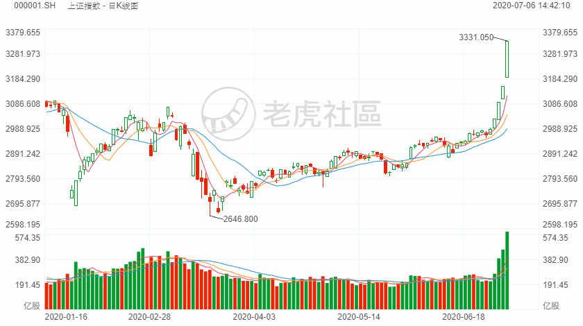 7月6日,A股持续拉升,上证指数涨超5%,财联社实时统计数据显示,上交所股票总市值报41.37万亿元,深交所总市值为29.58万亿元,二者合计70.95万亿,约10.06万亿美元,并创2015年6月以来新高。
