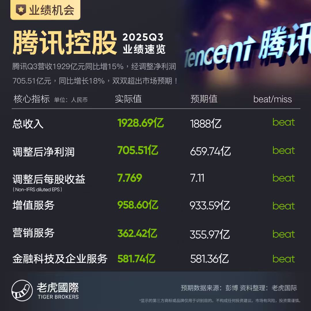 董事会主席兼首席执行官马化腾表示:“二零二五年第三季,我们实现了坚实的收入及利润增长,反映游戏、营销服务、金融科技及企业服务等业务的健康趋势。我们对AI的战略投入,不仅为我们在广告精准定向及游戏用户参与度等业务领域带来助益,也带来了编程、游戏及视频制作等领域的效率提升。我们持续升级混元基础模型的团队及技术架构,混元的图像及3D生成模型已处于行业领先水平。随着混元能力不断提升,我们在推动元宝普及的投入以及在微信内发展AI智能体能力所作的努力,将带来更积极的进展。”