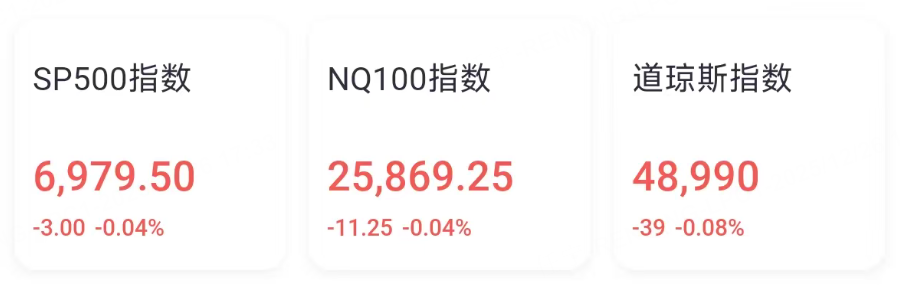 12月26日周五,美股三大指数期货在盘前时段微跌。美股昨日因圣诞节假期休市,今日恢复交易。