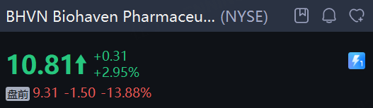 Biohaven Pharmaceutical Holding Co Ltd. 盘前大跌近14%,年内跌幅已超71%,试验性抑郁症药物在中期试验中未能达到主要目标。