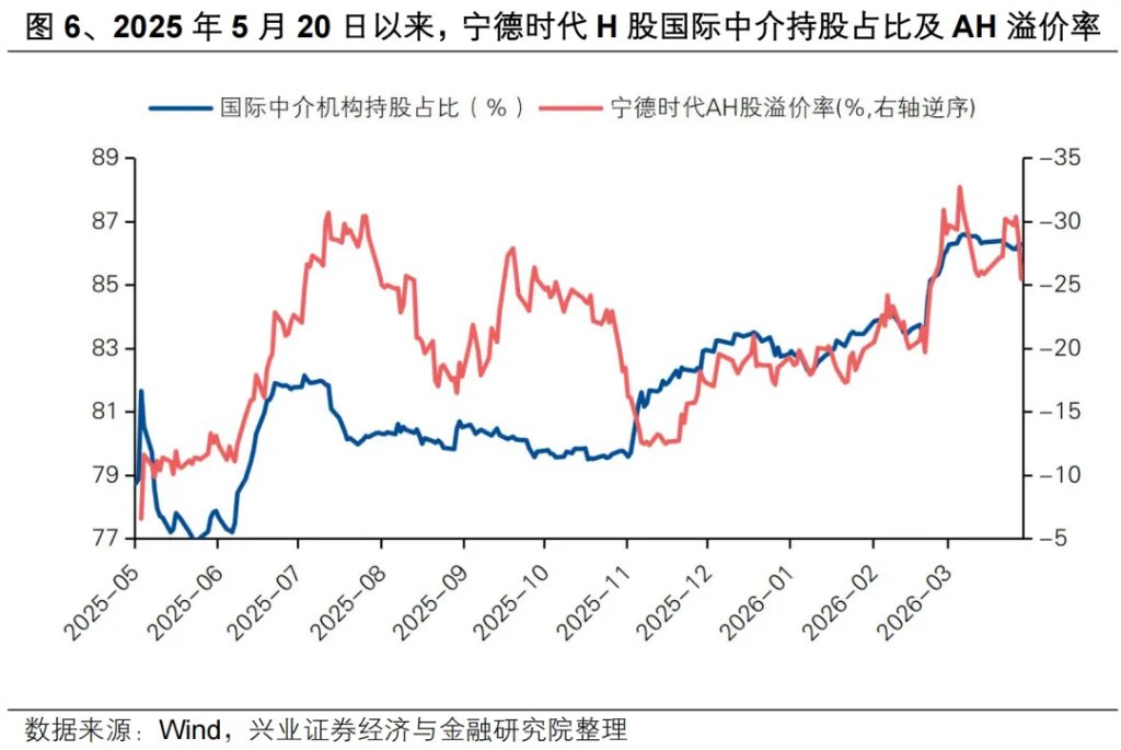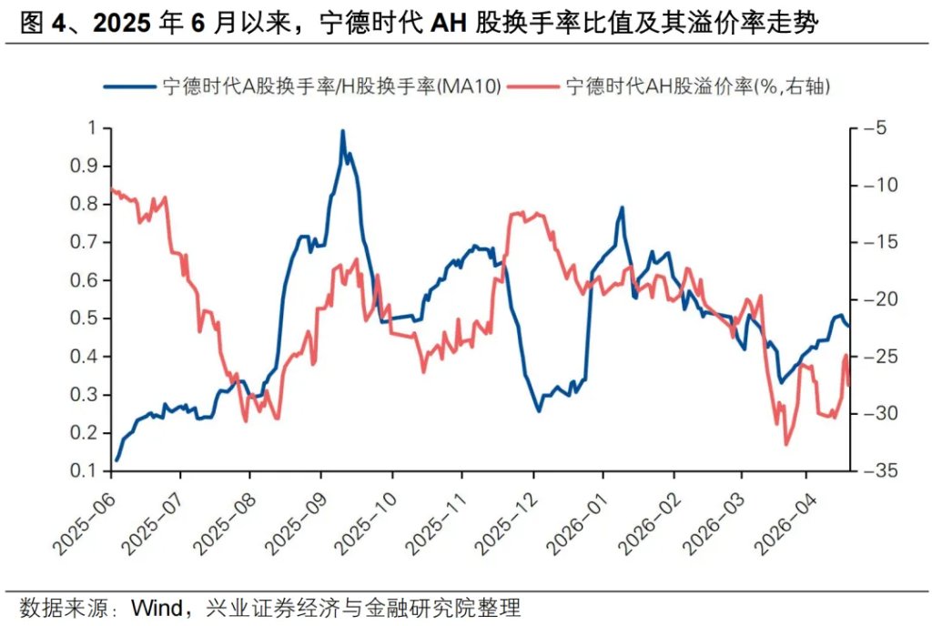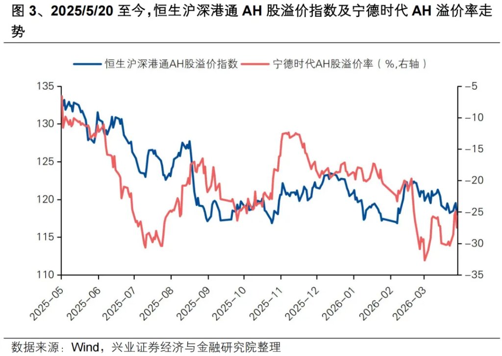兴证策略认为,宁德时代H股较A股溢价近30%,在两地上市公司中极为罕见。原因有三:H股流通盘仅为A股的3.7%,稀缺性推高股价;外资主导港股定价,对全球龙头给予更高估值;公司作为电池龙头的稀缺性与长期成长性,获海外中长期资本认可。