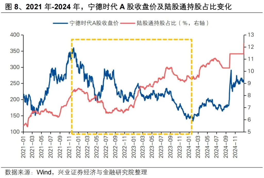 宁德时代AH溢价率本质上是公司在全球市场中稀缺性和龙头地位的象征,反映了中国新能源企业获得全球资金的认可。相比于对锂电行业短周期波动的关注,海外中长期资本更看重宁德时代作为全球电池龙头的地位、长期成长性及其在全球能源转型时代中的稀缺性(例如即便是在22-24年股价下行周期中,北上资金也依然持续增持宁德时代A股),因此愿意给予宁德时代H股更高的估值。参考台积电,随着本轮AI周期爆发,上游基建类公司业绩飙升,台积电作为全球稀缺且业绩增长确定性高的半导体龙头同样获得海外资金青睐,其中国台湾本地股较美股ADR的溢价率也由-10%左右的中枢降至-20%左右。
