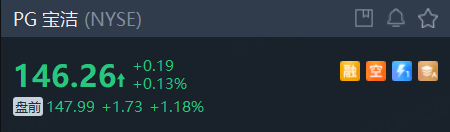 截至发稿,宝洁盘前涨超1%。