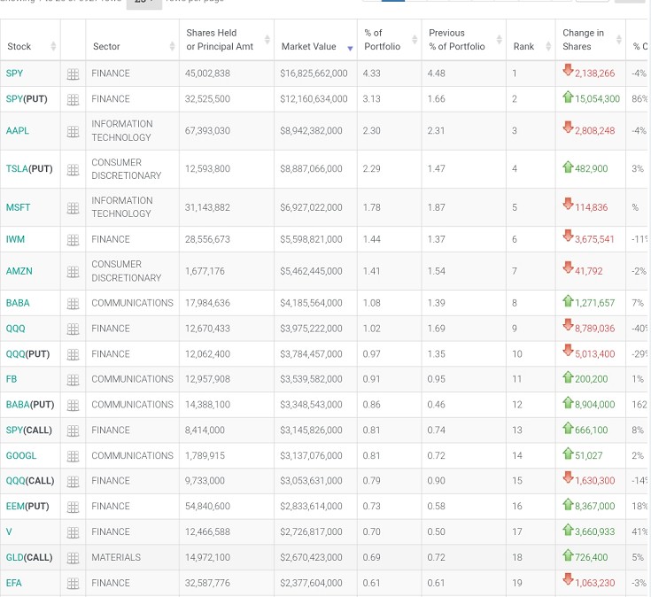 iShares罗素2000 ETF(IWM.US)、亚马逊(AMZN.US)、阿里巴巴(BABA.US)分别位列第六、第七和第八,持仓市值分别为55.99亿美元、54.62亿美元和41.86亿美元。