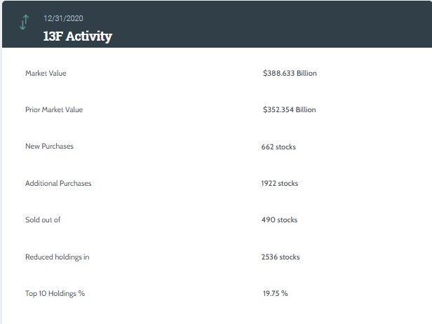 根据美国证监会(SEC)披露,高盛集团(GS.US)递交了截止至2020年12月31日的四季度持仓报告(13F)。
