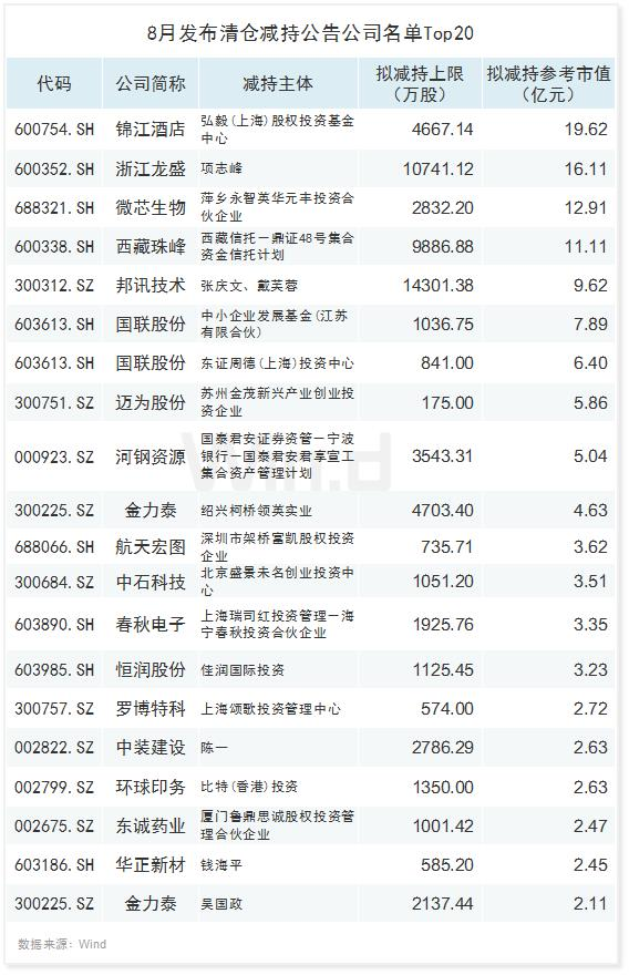 而8月份发布的减持计划中,其中有60份为清仓式减持,投资机构数量占比达70%,为减持主力军。